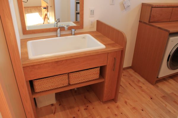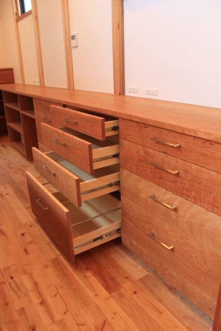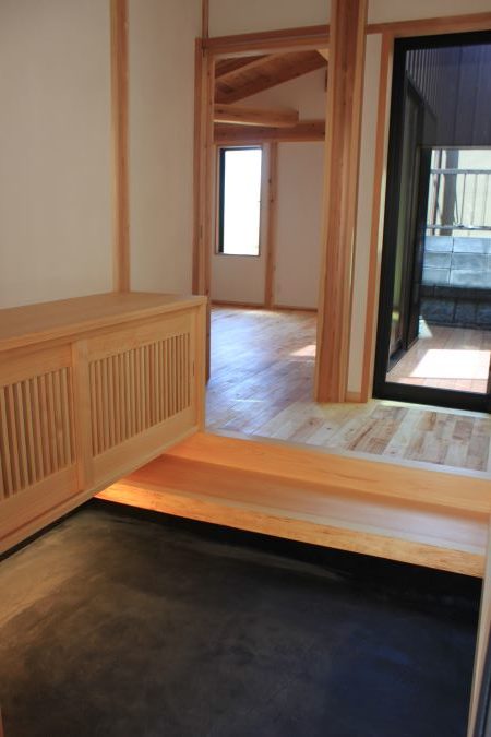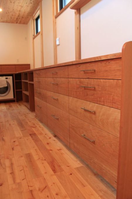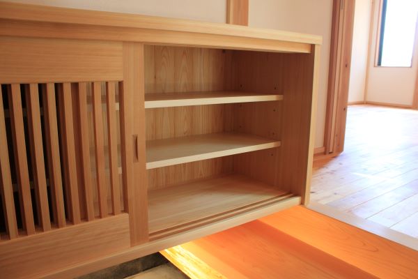 下駄箱はお施主さんの希望もあって桧材で制作。勿論made by OYAKATA