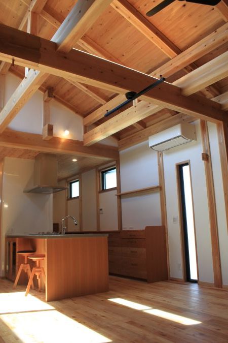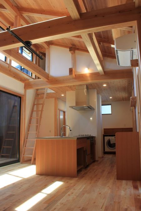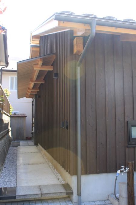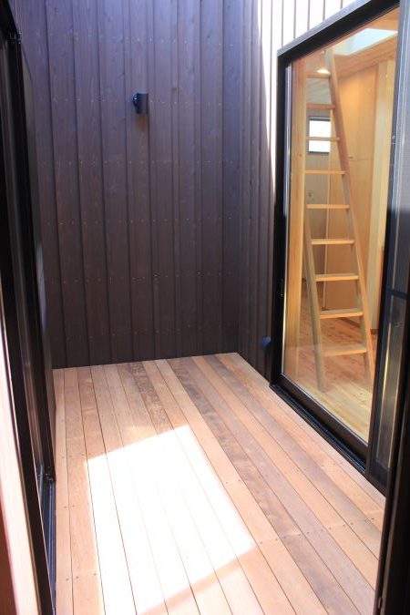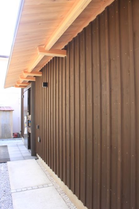 外壁は下地で使用する1等材の杉板に天然塗料を塗って仕上げました